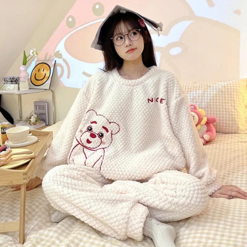 Пижама, Зимний теплый комплект из двух предметов, Домашняя одежда, Домашняя одежда, Милая и удобная пижама с героями мультфильмов