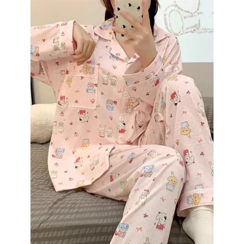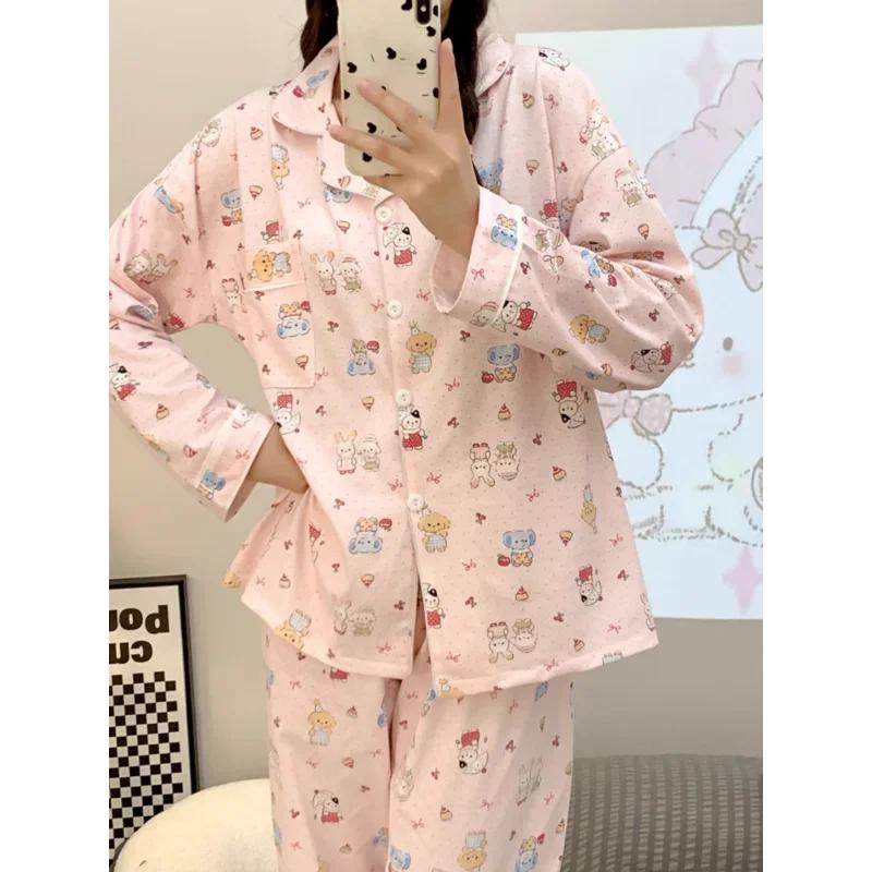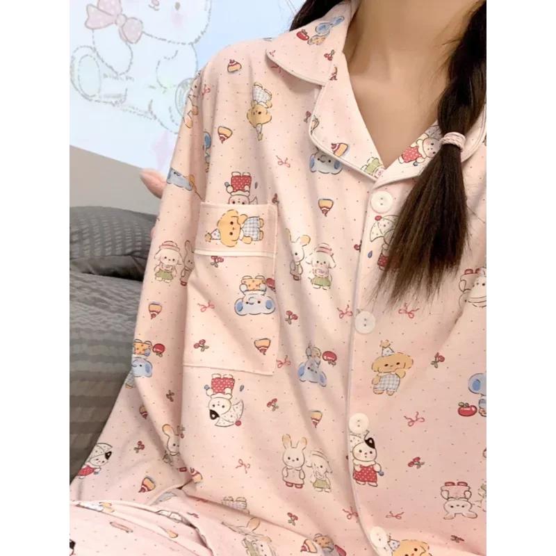 Осенняя пижама из хлопка с длинными рукавами и брюками, комплект из мультяшных женских пижам, шелковая пижама для женщин, повседневная домашняя одежда