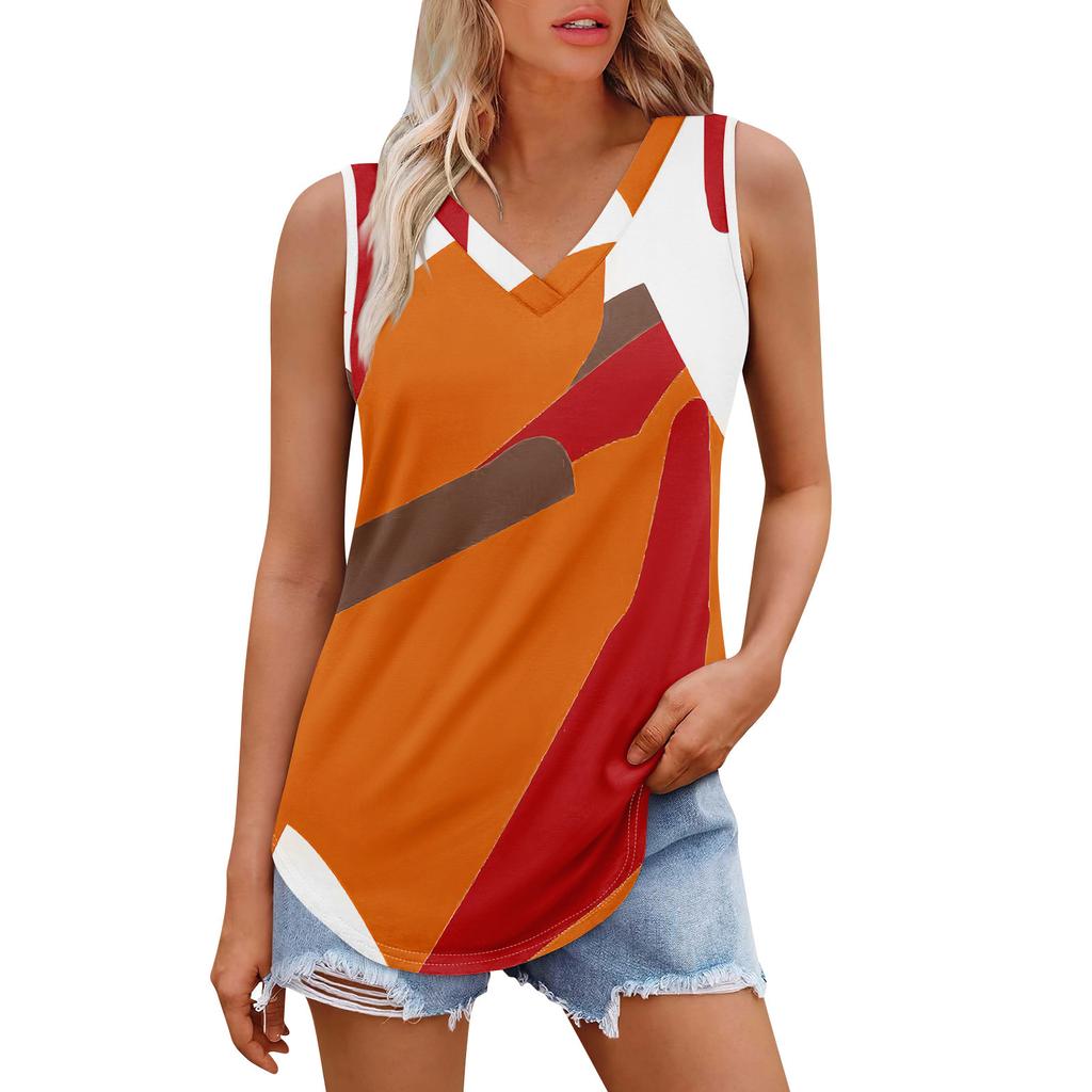 Женская майка с V-образным вырезом и принтом, повседневная майка, свободный крой, топы без рукавов, струящиеся
