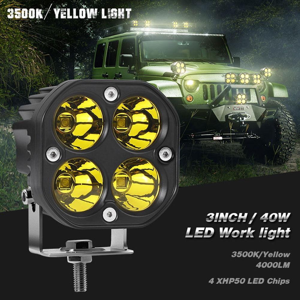 Новые светодиодные прожекторы для мотоциклов, желтые, для внедорожников, модифицированные рабочие фары на крышу, 3 дюйма, 40 Вт, маленькие квадратные фары