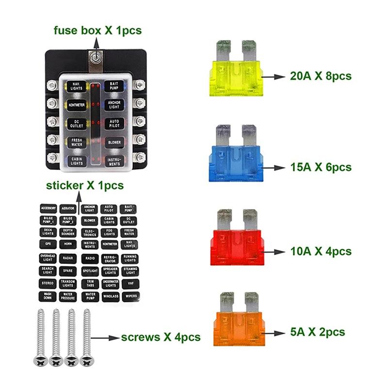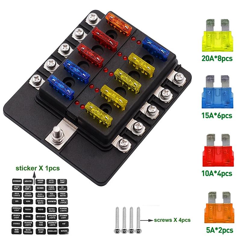 Название модели : Блок предохранителей для автомобиля, 10-позиционный держатель предохранителя 12-32 В, пластиковая крышка