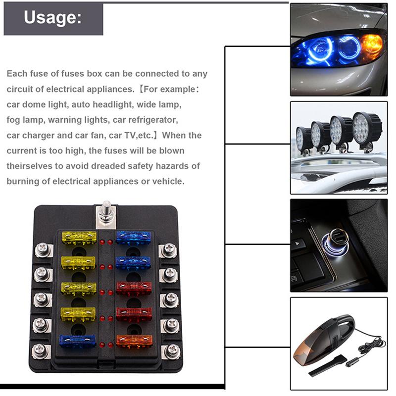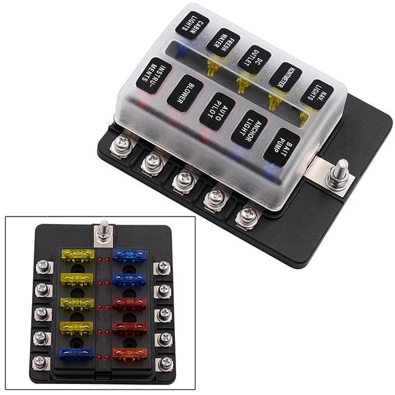 Год : Блок предохранителей для автомобиля, 10-позиционный держатель предохранителя 12-32 В, пластиковая крышка