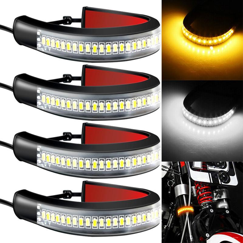 1/4 шт 12 В светодиодный указатель поворота мотоцикла и ДХО янтарно-белый кольцевой мото-мигалка вилочная полоса лампа мигающий фонарь мото аксессуары