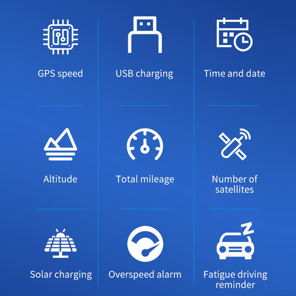 3. Несколько функций: Скорость в реальном времени, общий пробег, время и дата, высота, уровень заряда батареи и состояние зарядки батареи, количество спутников;