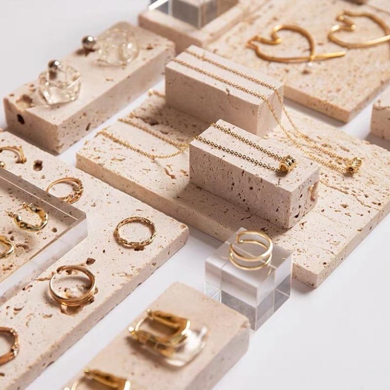 Мраморная Подставка для Креативной Демонстрации Ювелирных Изделий Геометрическая Подставка для Колец Серег Ожерелий Роскошный Витринный Реквизит Прилавок Женская Подставка для Демонстрации Ювелирных Изделий Упаковка Украшения Поднос