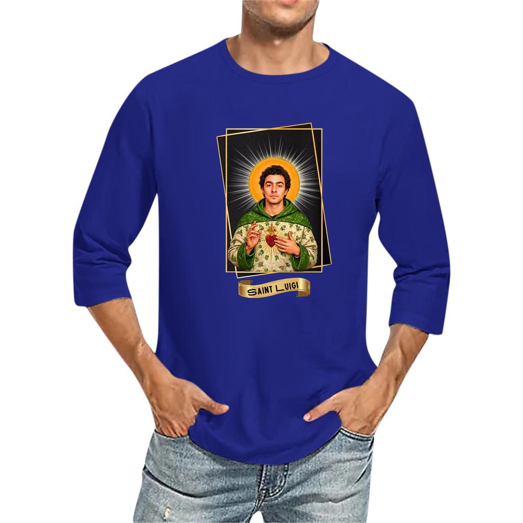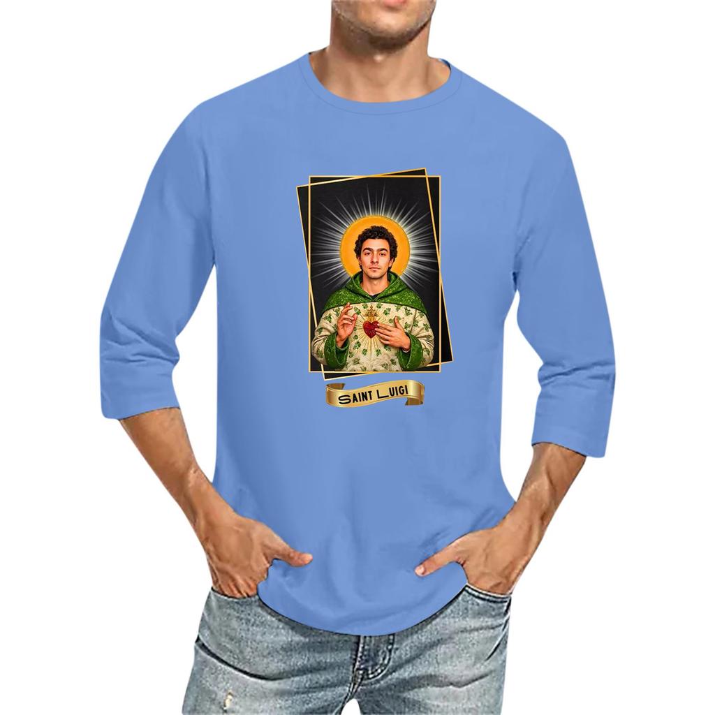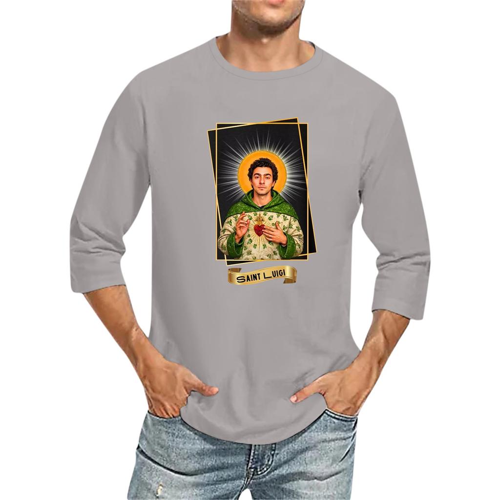 Мужская футболка с круглым вырезом и рукавом семь четвертей, мужская повседневная свободная футболка с рукавом семь четвертей