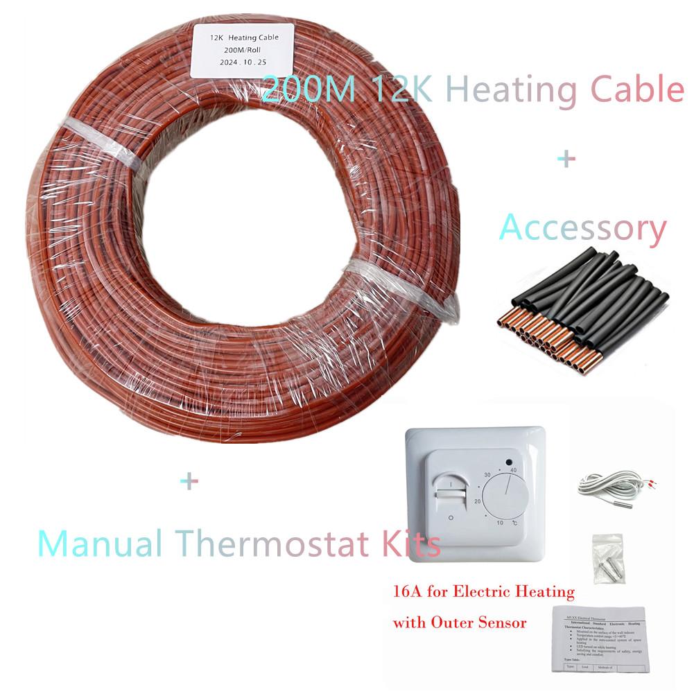 200 м 12K силиконовый резиновый нагревательный кабель и комплекты ручного термостата 33 Ом/м углеродное волокно нагревательный провод для пола с термостатом костюмы
