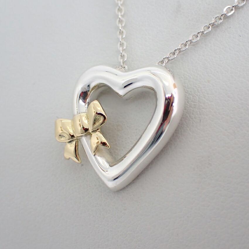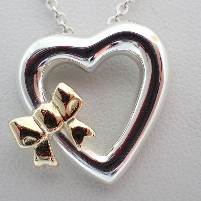 [Б/у] TIFFANY/Tiffany 925/750 Сердце Лента Подвеска/Ожерелье/g406-28