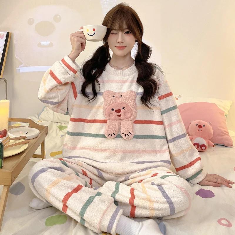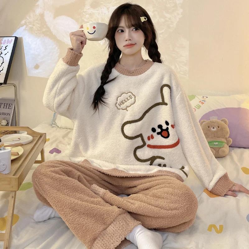 Пижама зимняя домашняя одежда мультяшная пижама штаны комплект зимняя пижама комплект из двух частей