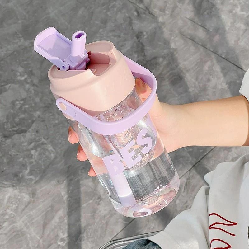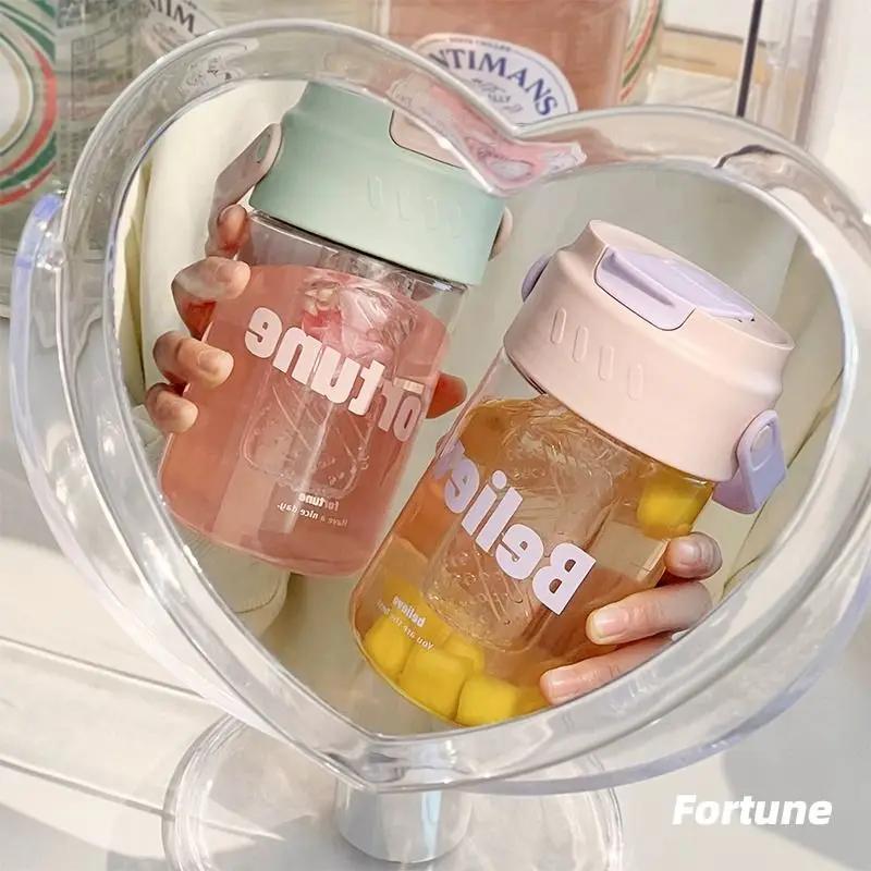 Милая простая студенческая чашка для воды, стеклянные стаканчики с трубочкой для фитнеса, пластиковые стаканчики для кофе, походные портативные бутылки для сока, бутылка для воды