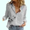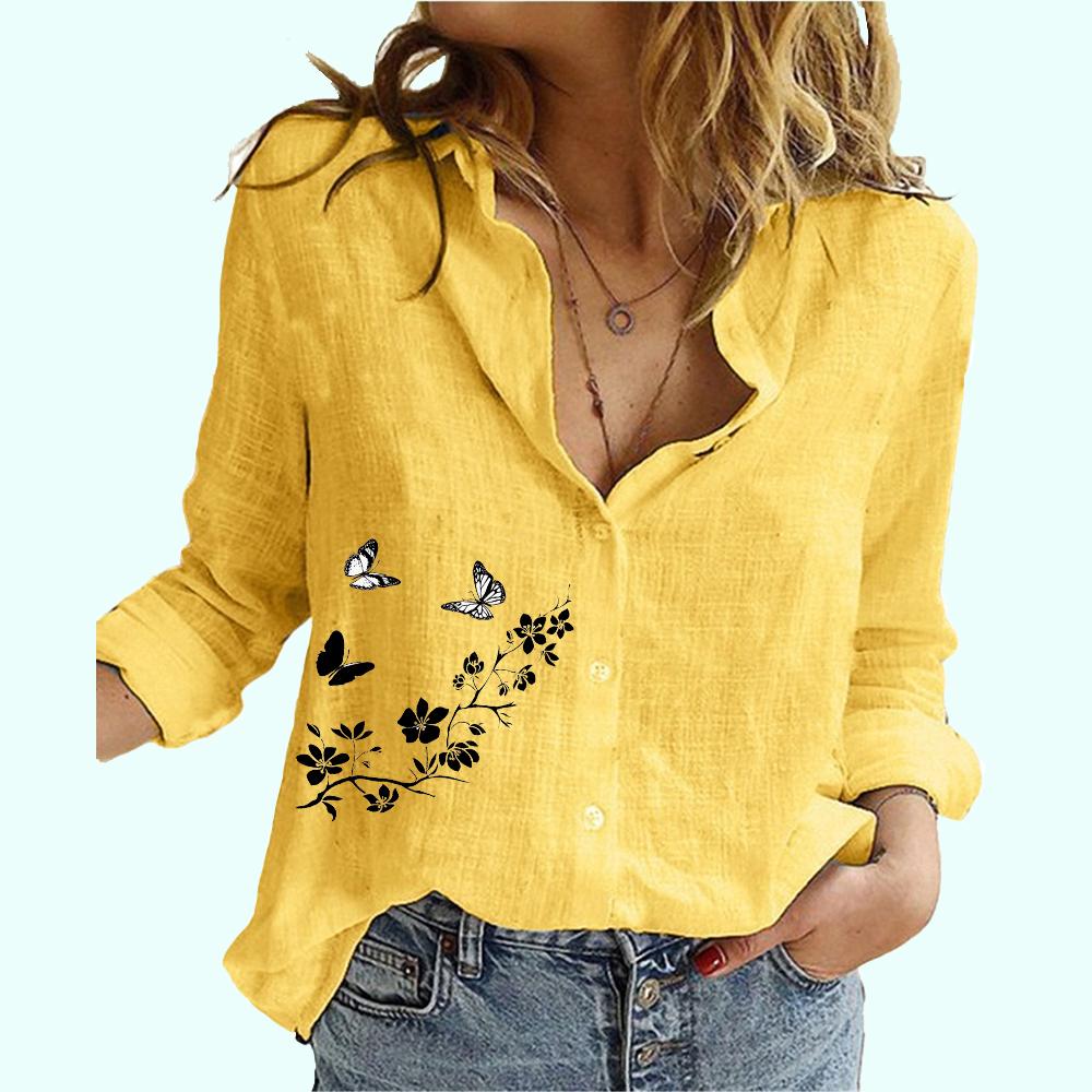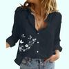 Женская мода хлопок льняная рубашка весна и осень отворот воротник тонкий топ повседневный принт блузка