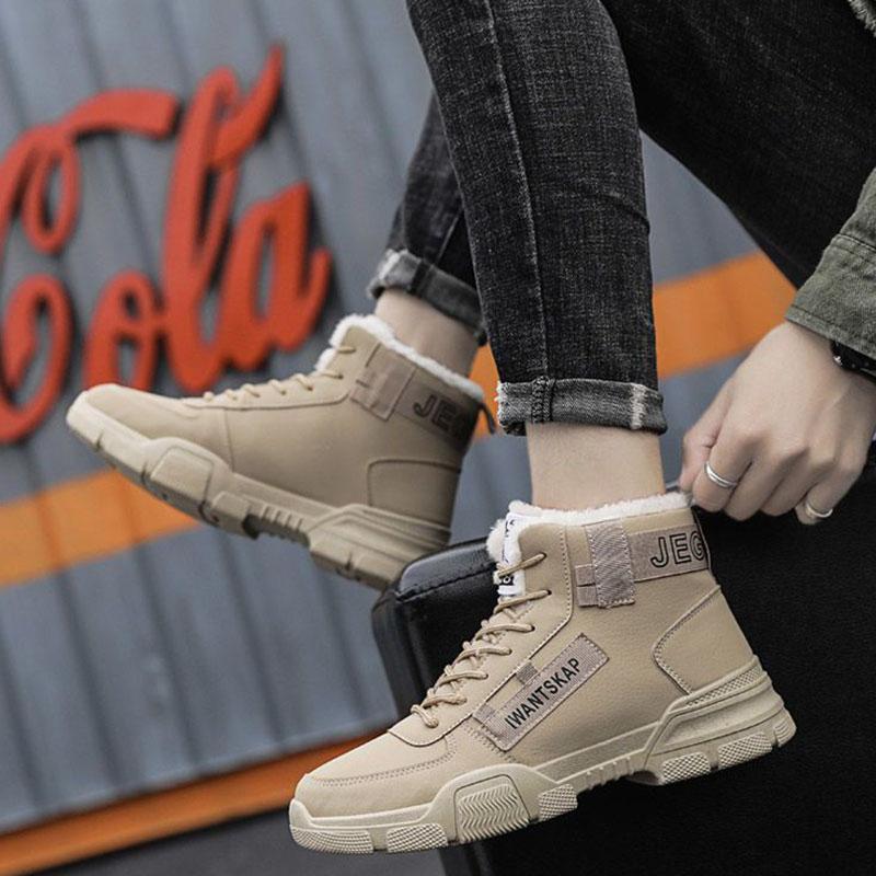 Зимние непромокаемые теплые туфли с высоким берцем для мужчин, утепленные плюшевые теплые ботинки цвета хаки для мужчин