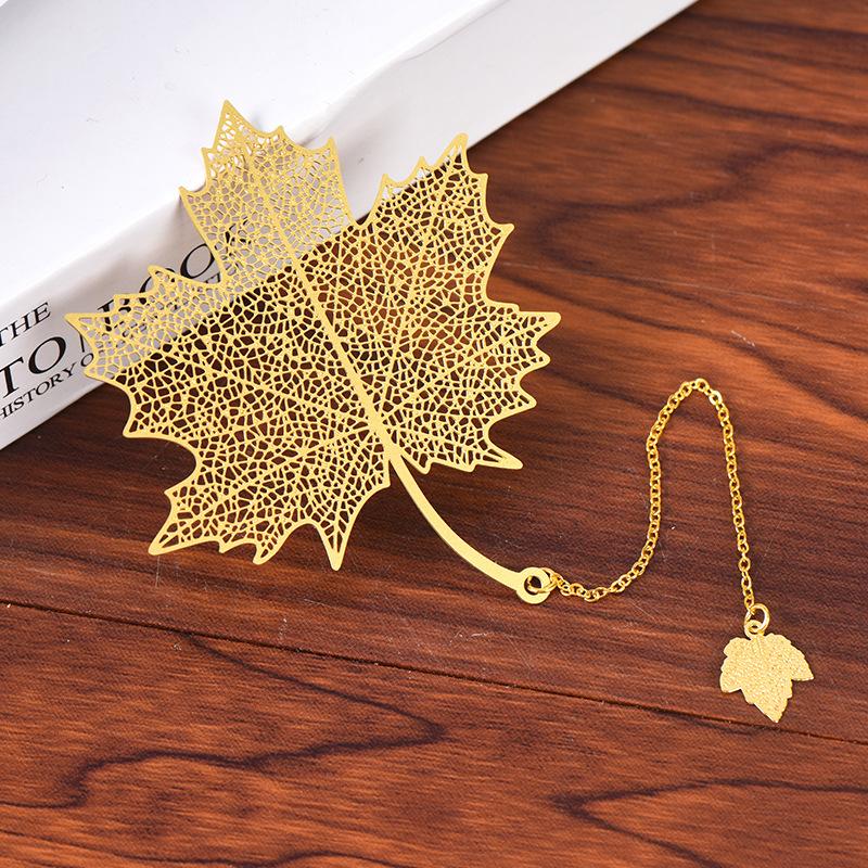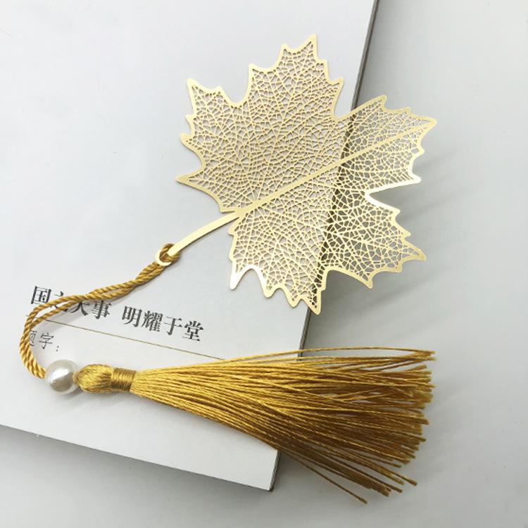 Креативная закладка для книг с росписью по металлу, китайский полый кленовый лист, бахромчатый абрикосовый лист, закладка для книг, подарки, латунная кисточка, школьные принадлежности