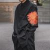 2024 Ямамото Стиль Красная Цветочная Рубашка Мужская Японская Удлиненная Темная Вышитая Цветочная Топ Унисекс Свободные Рубашки