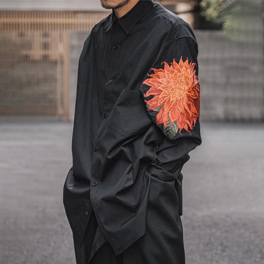 2024 Ямамото Стиль Красная Цветочная Рубашка Мужская Японская Удлиненная Темная Вышитая Цветочная Топ Унисекс Свободные Рубашки — купить товар онлайн с бесплатной доставкой по всему миру!