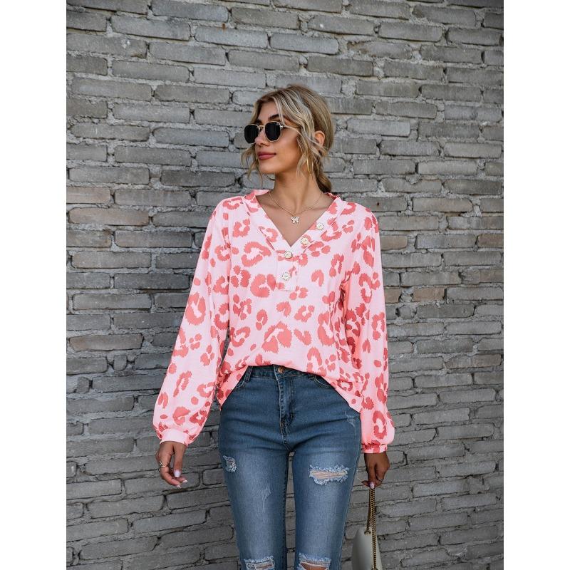 Плюс Размер Леопардовый Принт V-образный вырез с открытыми плечами Длинный рукав Топ для Женщин