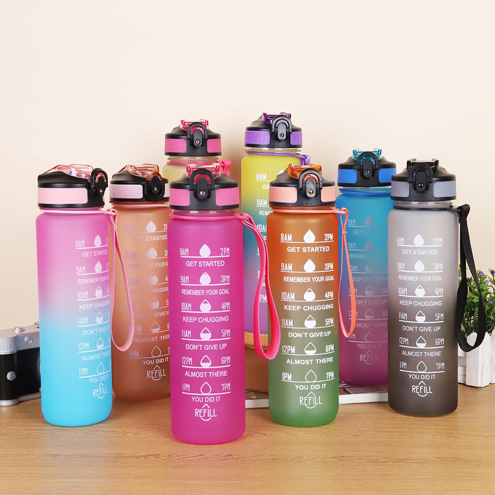 1000 мл питьевые спортивные бутылки матовый градиент мотивирующая питьевая бутылка с соломинкой большой емкости для школы на открытом воздухе офиса