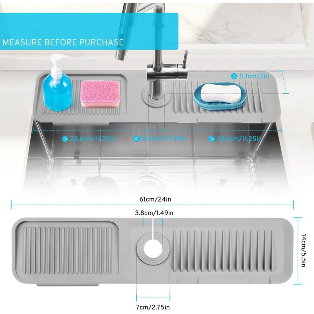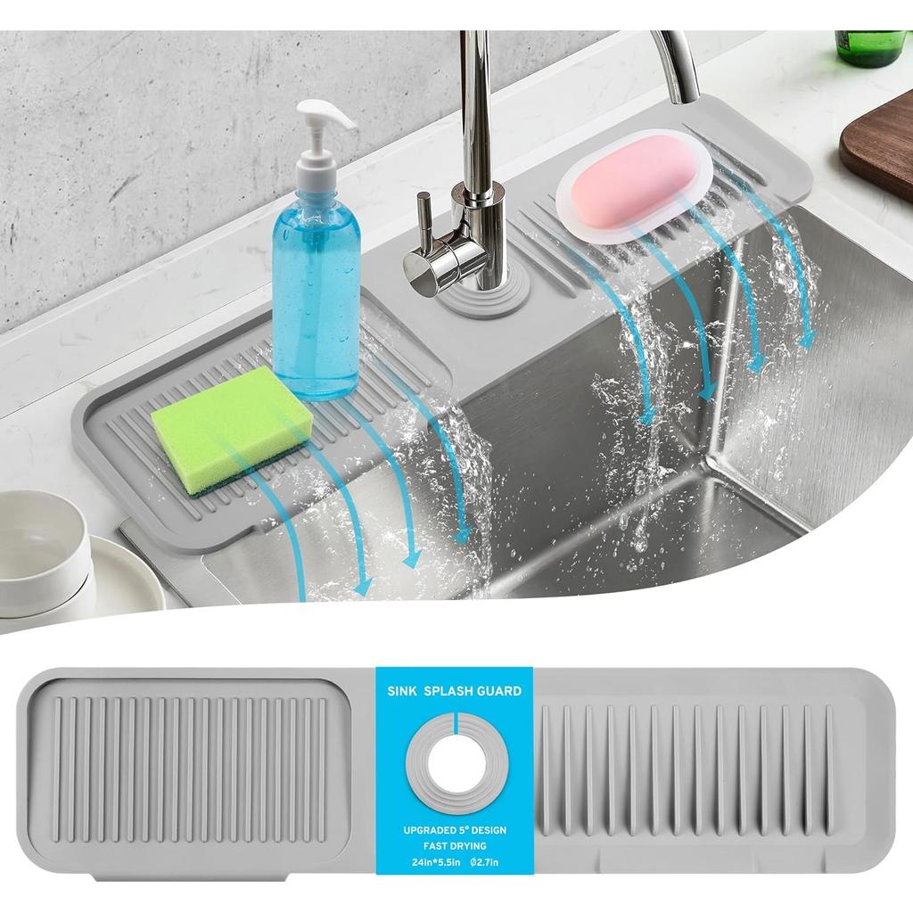 Защита от брызг кухонной раковины, силиконовый коврик для кухонной раковины, поддон для сбора брызг, защитные коврики для кухонной раковины(Серый 24,0" x 5,5")