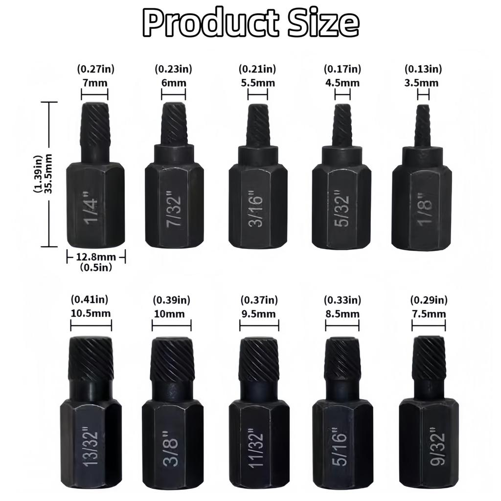 10 шт. экстрактор винтов с шестигранной головкой, многошлицевой, легко снимается, экстрактор сломанных винтов (1/8"-13/32") инструмент для удаления
