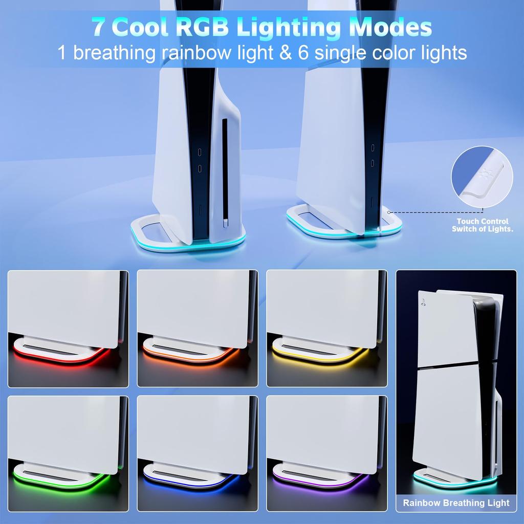 Вертикальная подставка для игровых консолей PS5/PS5 Slim, настольное нескользящее основание с 7 RGB-лампами для игровых аксессуаров PlayStation 5