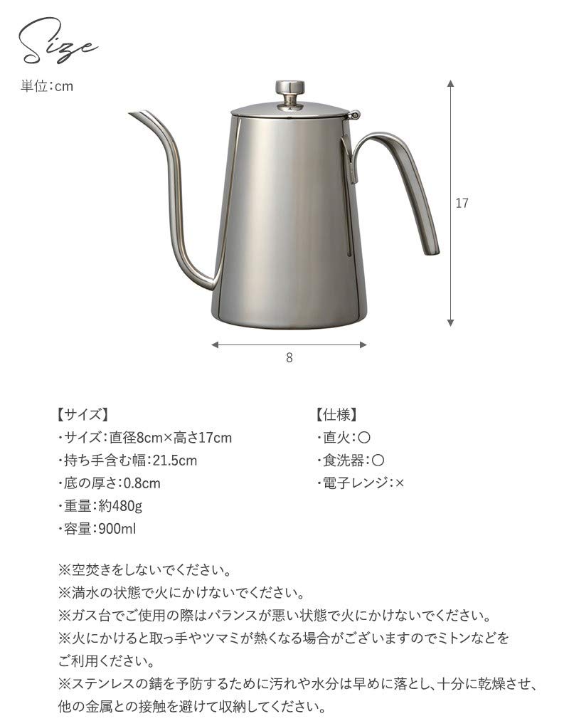 Чайник KINTO SCS 900 мл для капельного кофе, открытый, безопасный, подарочный, 27628, пожарная машина/посудомоечная машина