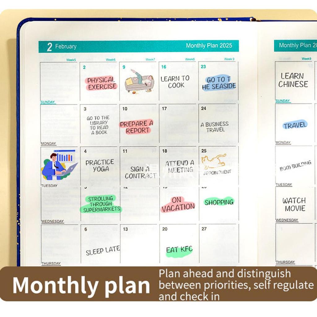 Внутренние страницы на английском языке, кожаный блокнот формата А5 на 2025 год, ежедневник для студентов, дневник учета на 365 дней, блокнот, заметки, 180 листов, 360 страниц