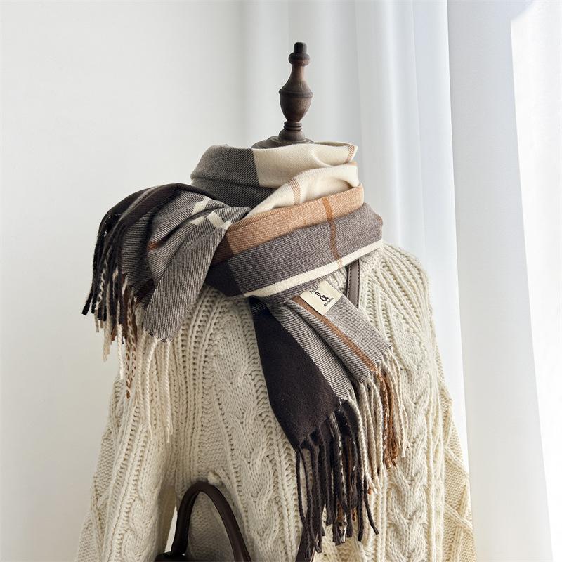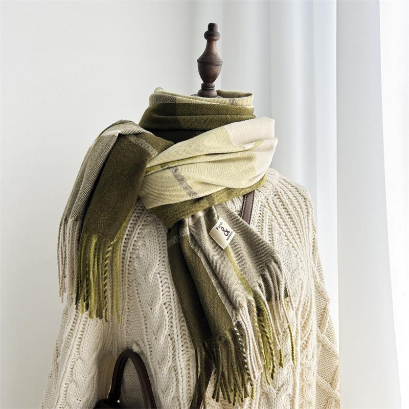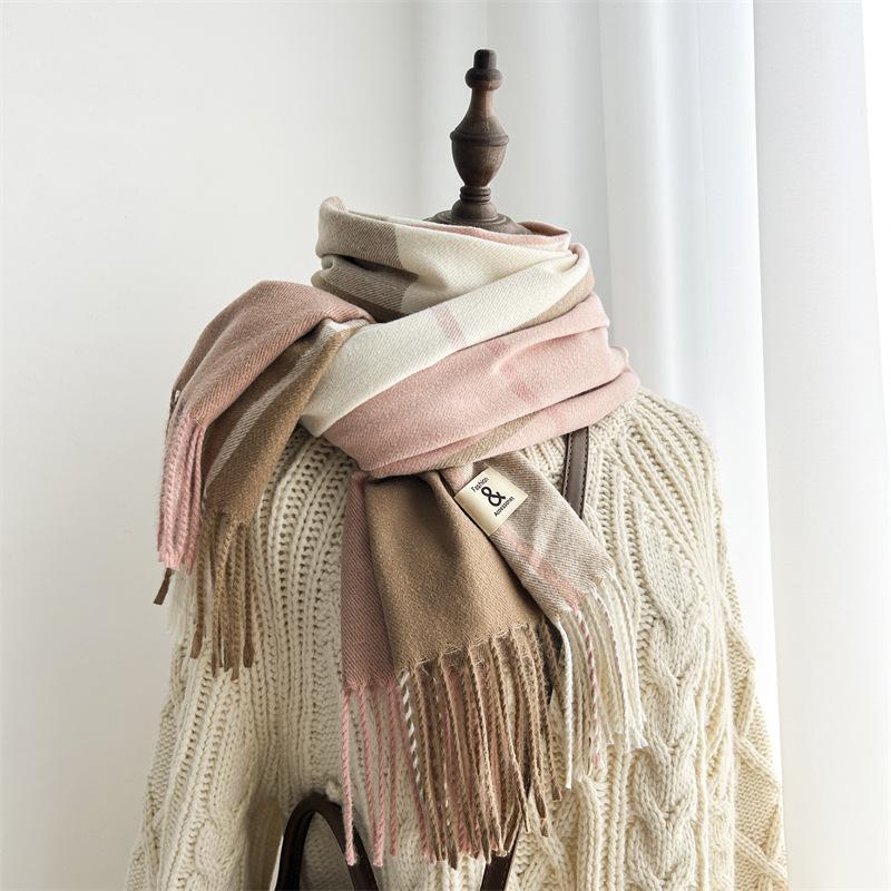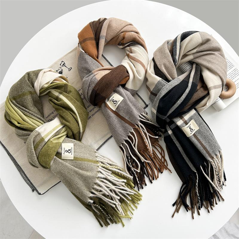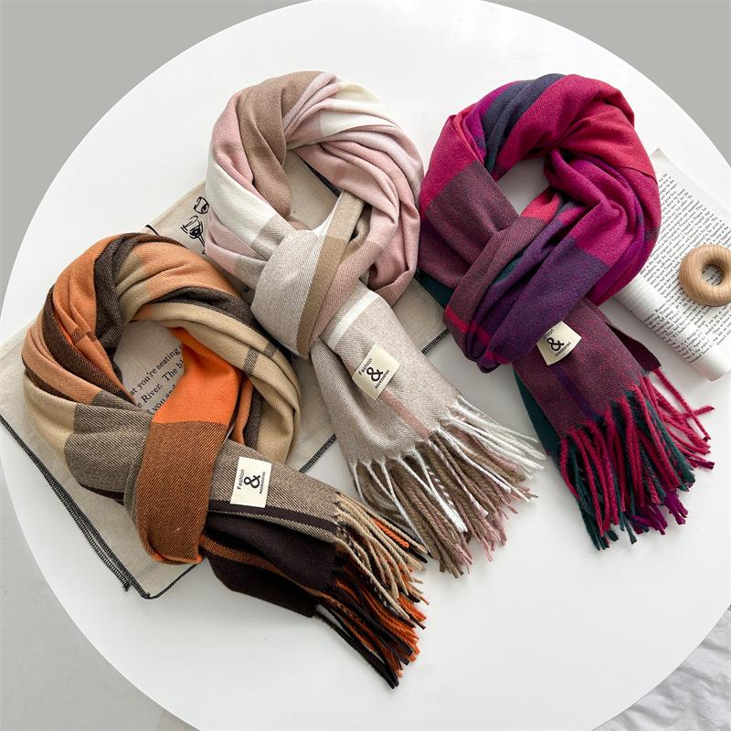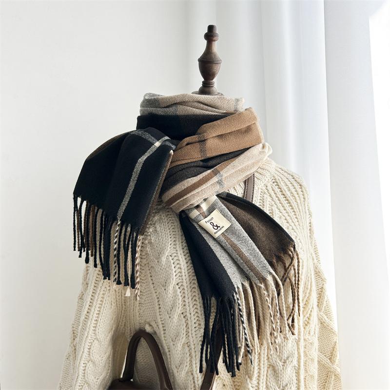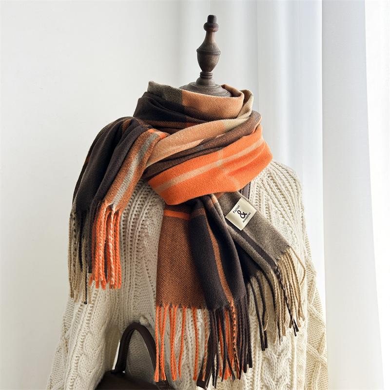 Универсальный искусственный кашемировый мягкий и липкий клетчатый шарф с кисточками для женщин, зимний роскошный новый модный утолщенный теплый платок