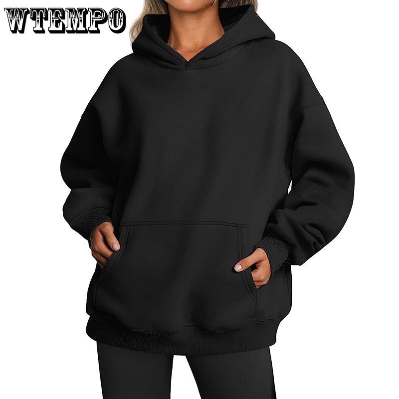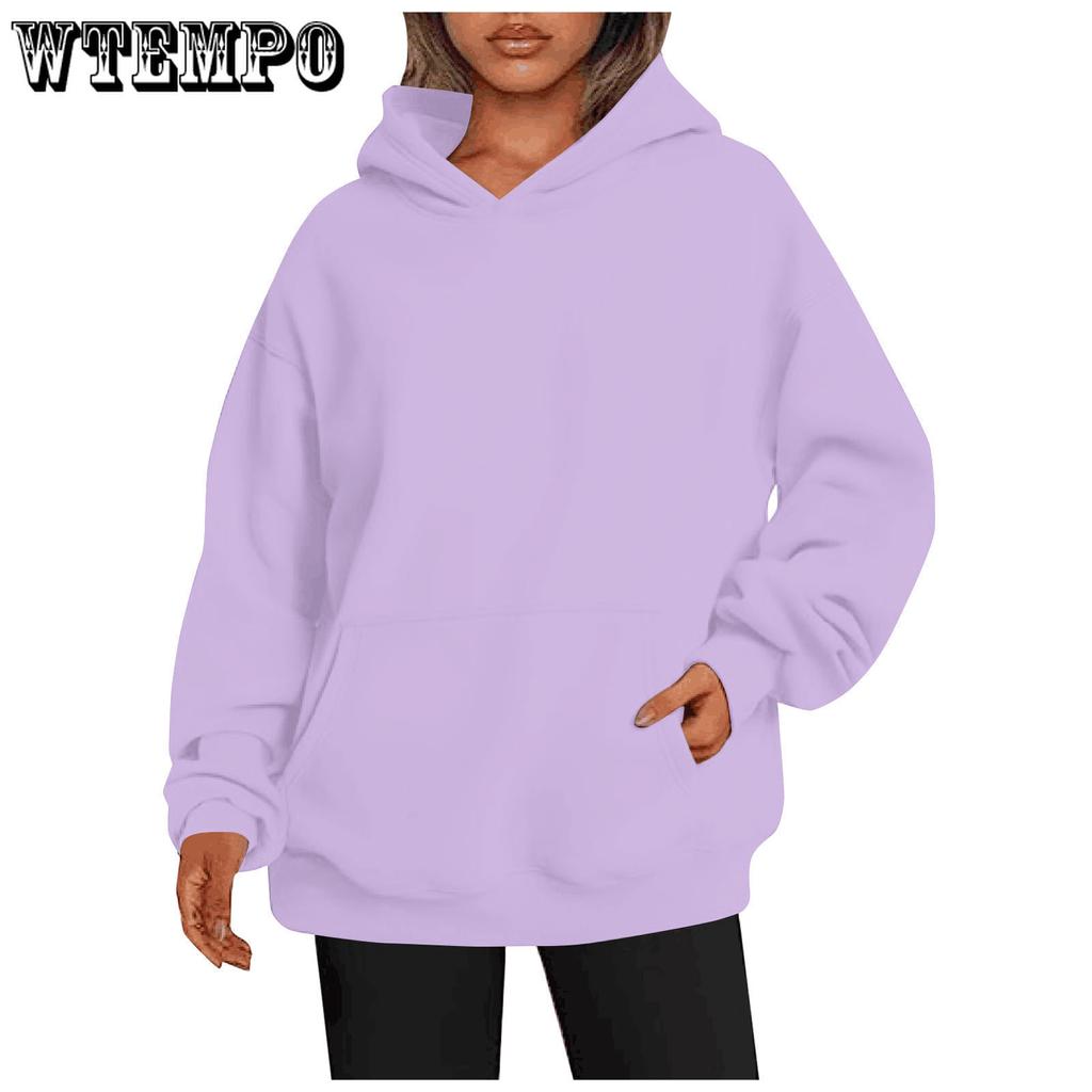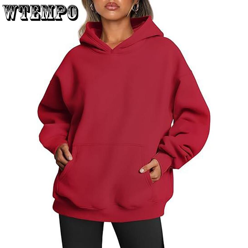 Женский пуловер с капюшоном, однотонный свободный повседневный флисовый свитшот большого размера