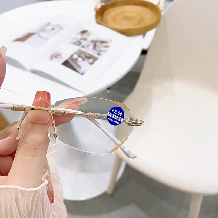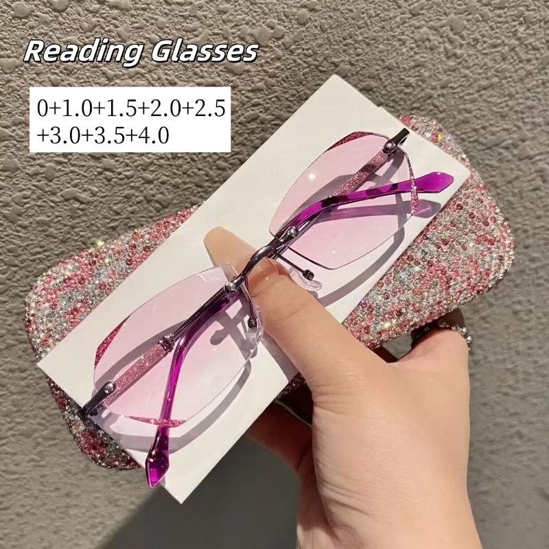 Очки для чтения без оправы для женщин, модные очки для пресбиопии с алмазной огранкой, очки с линзами для дальнозоркости, защищающими от синего света