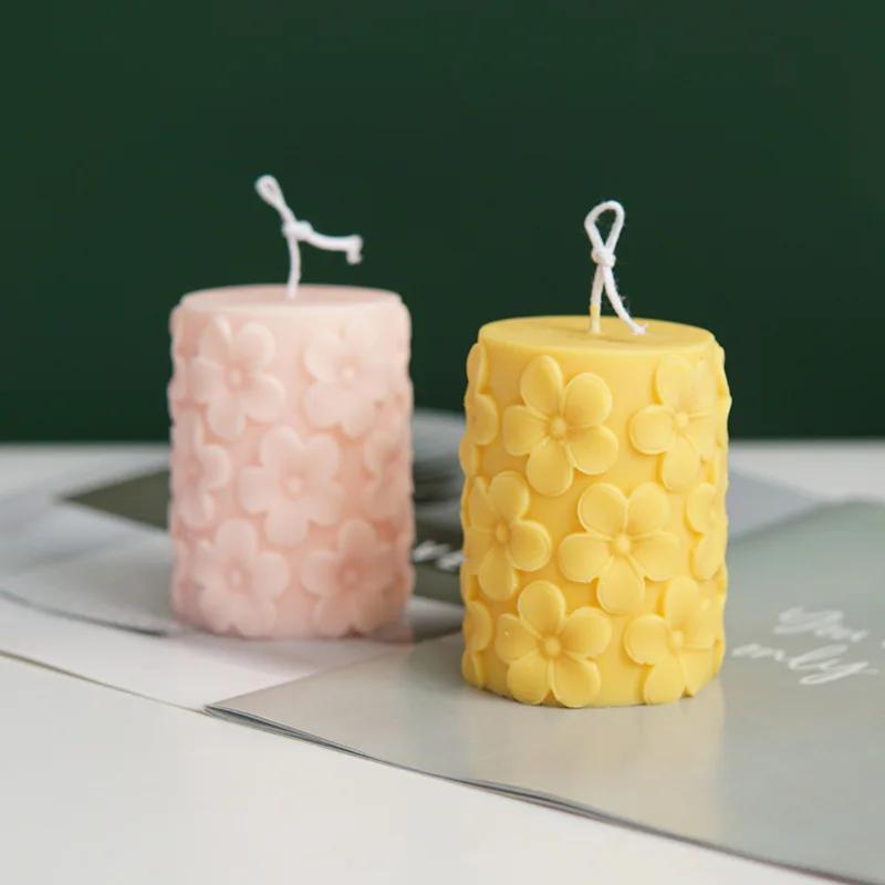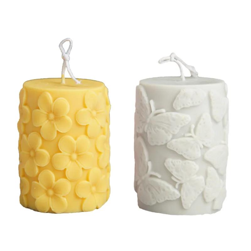 Форма для ароматерапевтической свечи в форме цветка и бабочки, рельефная форма для свечи в форме цилиндра, 3D силиконовая форма, форма для ароматерапевтической гипсовой свечи