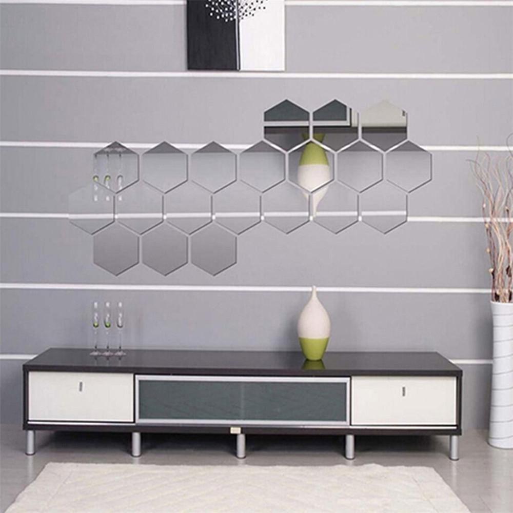 12шт шестиугольная рамка стереоскопическое зеркало стены стикер украшения