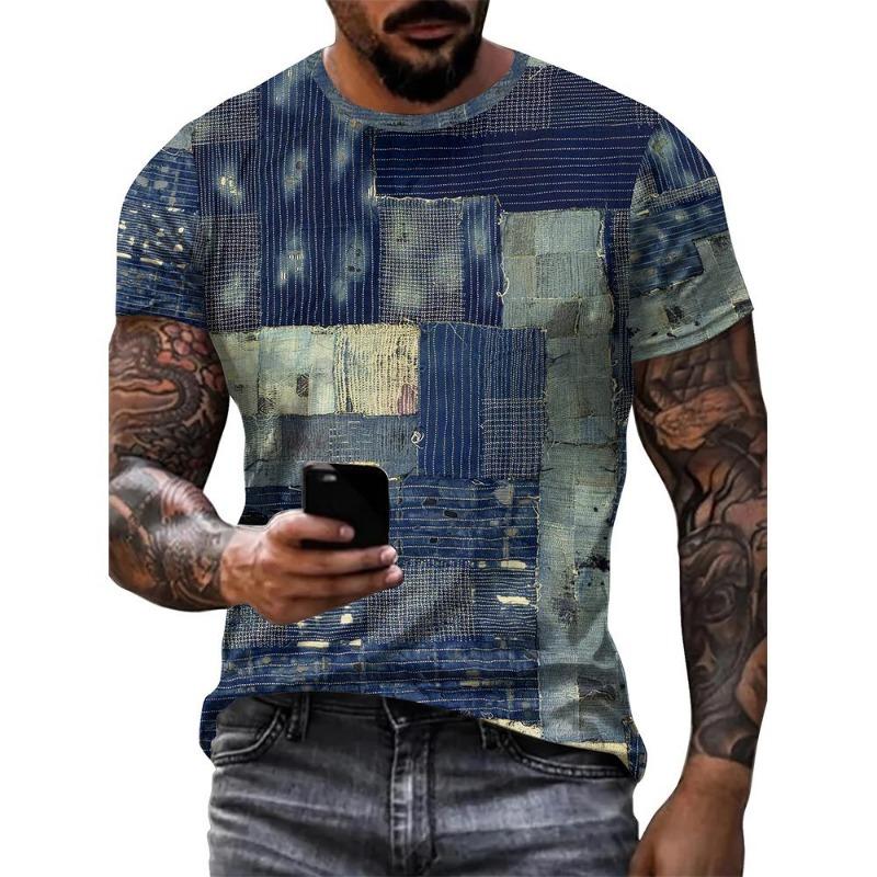 Новая джинсовая футболка с 3D-образным узором для мужчин, летняя, с коротким рукавом и круглым вырезом, модная уличная спортивная одежда, свободная повседневная мужская одежда