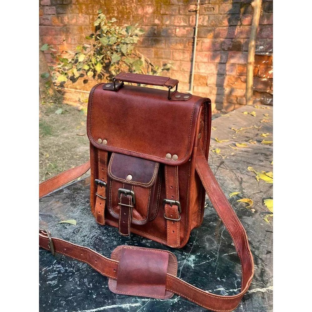 Сумка коричневая через плечо из натуральной винтажной козьей кожи