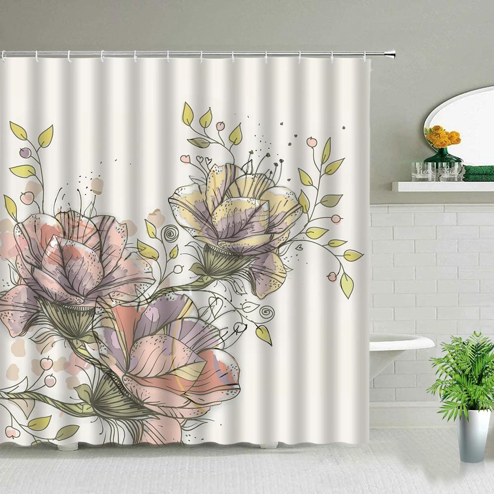 Роза, бабочка, белый цветок, занавеска для душа, цветочный принт, водонепроницаемая полиэстеровая занавеска для ванной, ткань для украшения ванны