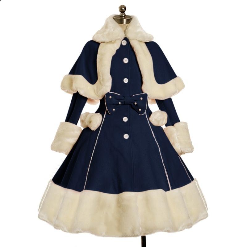 Женская мода с длинным рукавом, шубы, винтажное готическое викторианское милое платье Лолиты с бантом, осень-зима, теплые платья с лацканами, пальто, фэнтезийный костюм для косплея