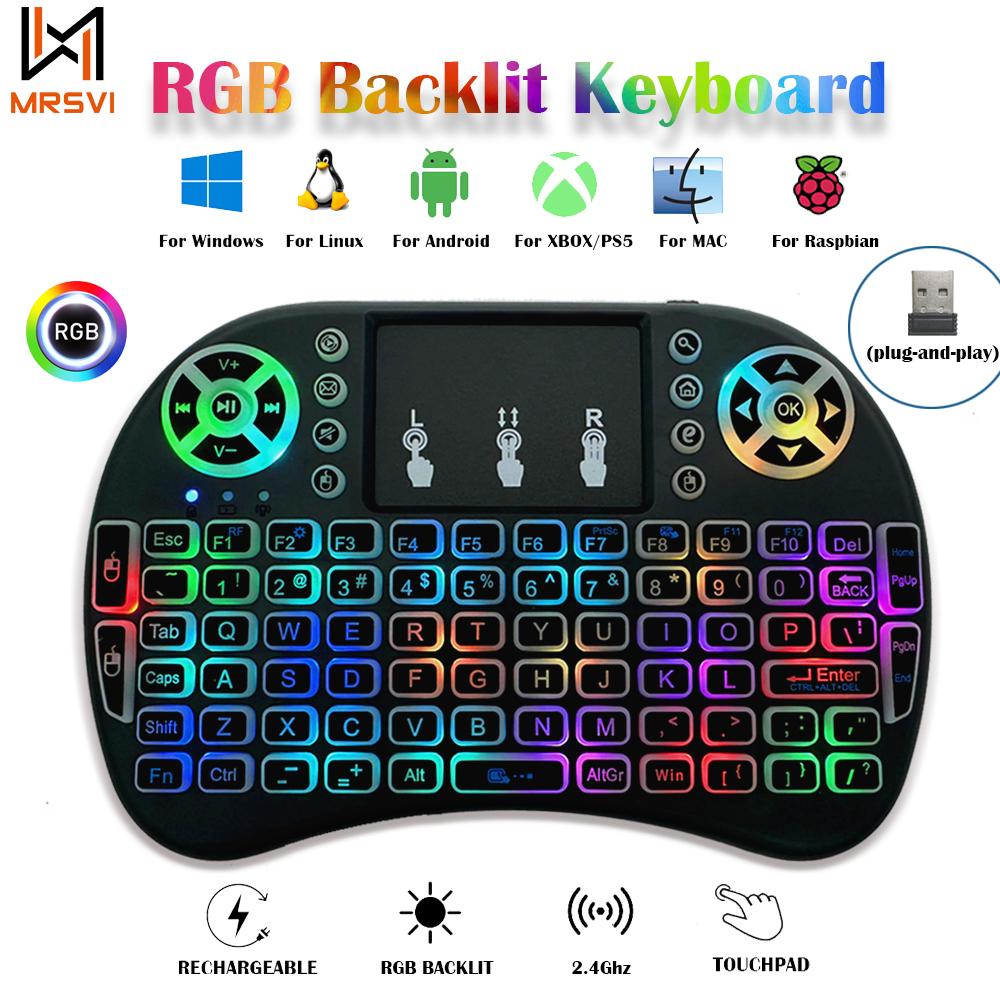 I8 RGB подсветка 2.4G мини беспроводная клавиатура 7 цветов многоязычная воздушная мышь клавиатура сенсорная панель мышь для Android TV Box — купить товар онлайн с бесплатной доставкой по всему миру!