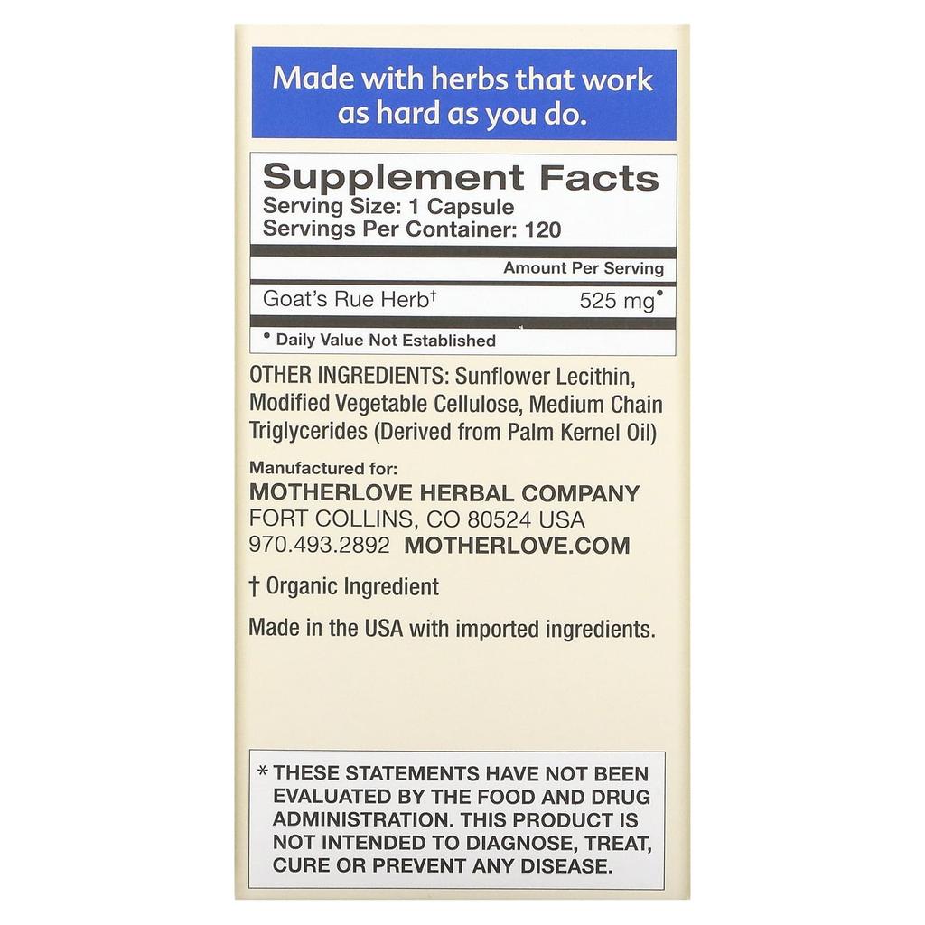 Motherlove, breastfeeding, Goat'srue, 120 liquid capsules