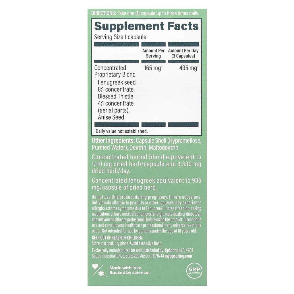 UpSpring Milkflow, Пажитник + Расторопша, 100 вегетарианских капсул