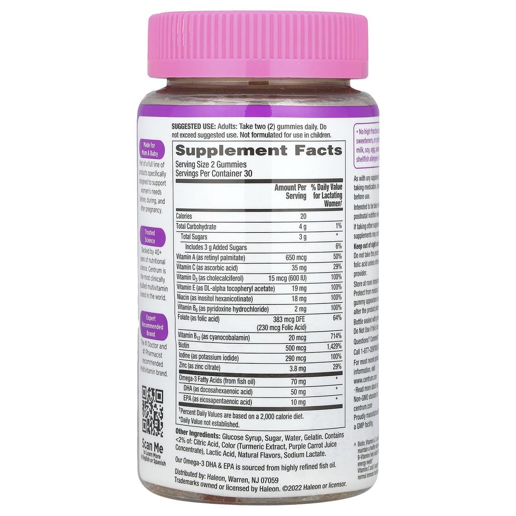 Описание товара: нет. 1 рекомендованный врачами бренд мультивитаминов Содержит необходимые питательные вещества, биотин и 50 мг ДГК на порцию Укрепляет волосы, кожу и ногти, энергию и иммунитет мамы^ Натуральные ароматизаторы и другие натуральные ароматизирующие добавки Без глютена и не содержит генетически модифицированных ингредиентов Содержит Продукты для матерей и младенцев Питательные вещества, необходимые женщинам до, во время и после беременности Надежная наукаПродукты, проверенные более чем 40 годами исследований в области питания. Centrum — наиболее клинически исследованный бренд поливитаминов в мире.. Бренд, рекомендованный экспертами#1 Рекомендованный врачами и фармацевтами мультивитаминный бренд^Биотин, витамины А, С и Е помогают поддерживать здоровый внешний вид.Витамины группы В помогают вам удовлетворить вашу суточную потребность в калориях. Витамины C и E поддерживают нормальную иммунную функцию.