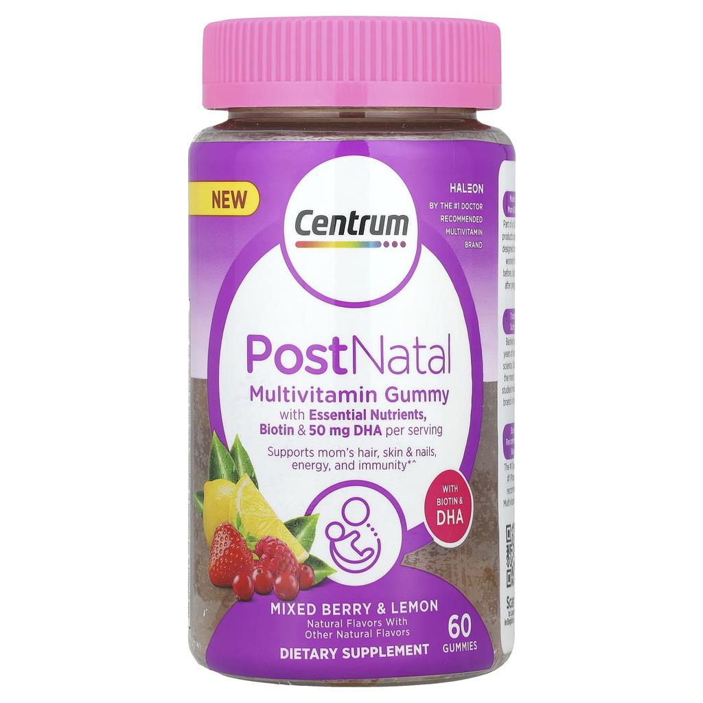 Центрум, Послеродовые мультивитаминные жевательные конфеты, Смешанные ягоды и лимон, 60 жевательных конфет