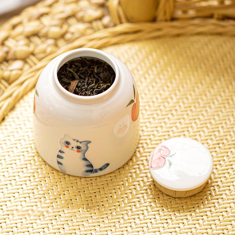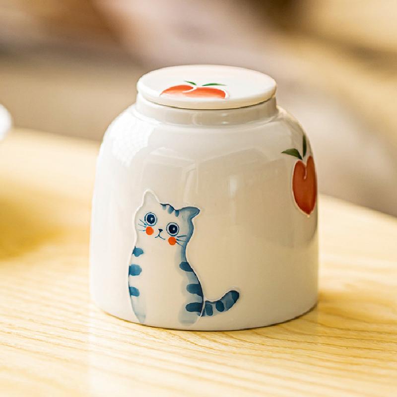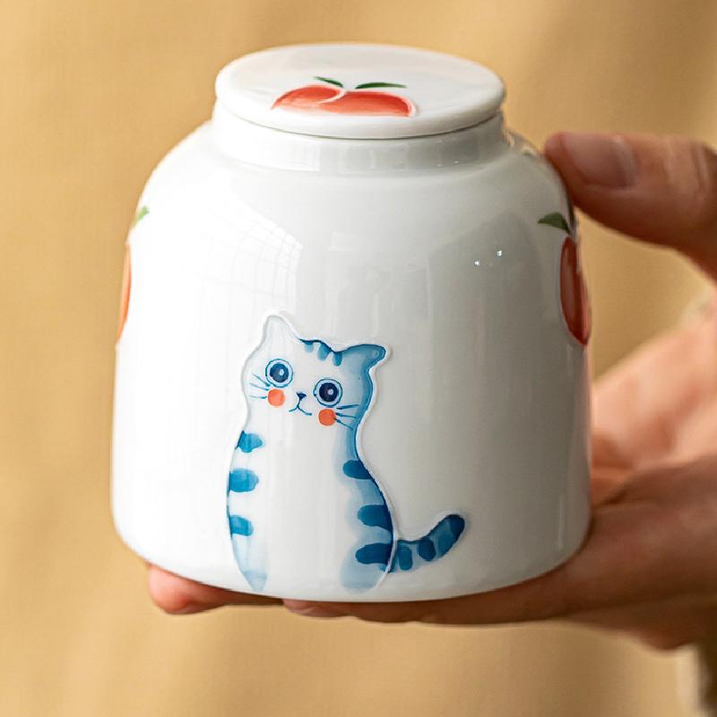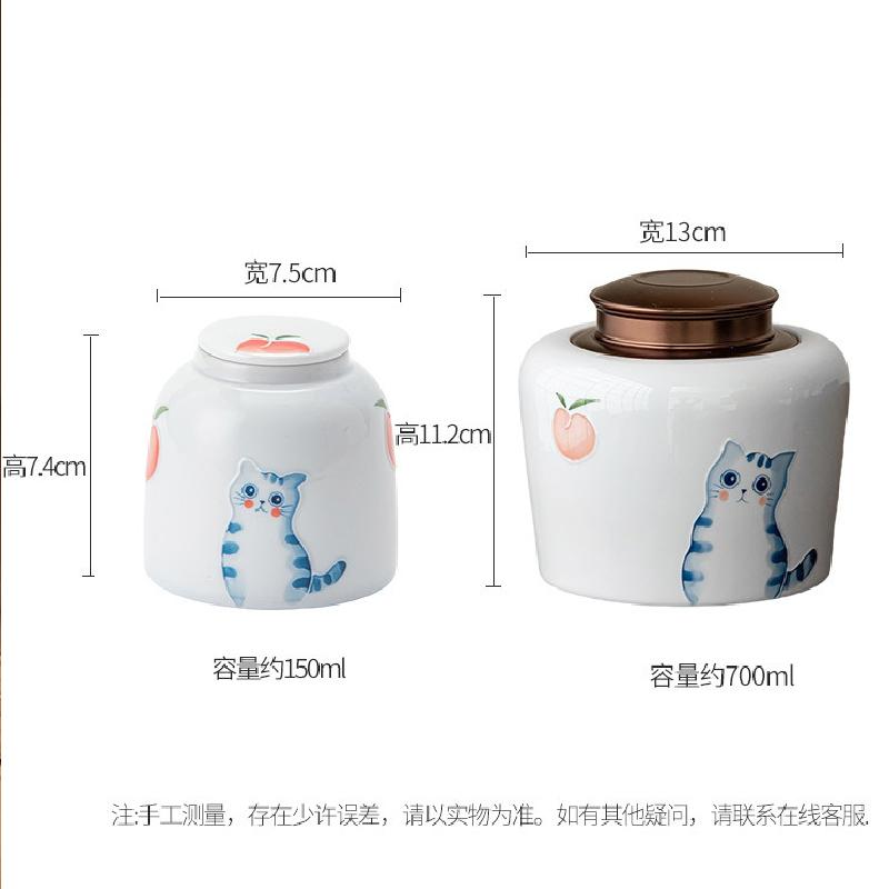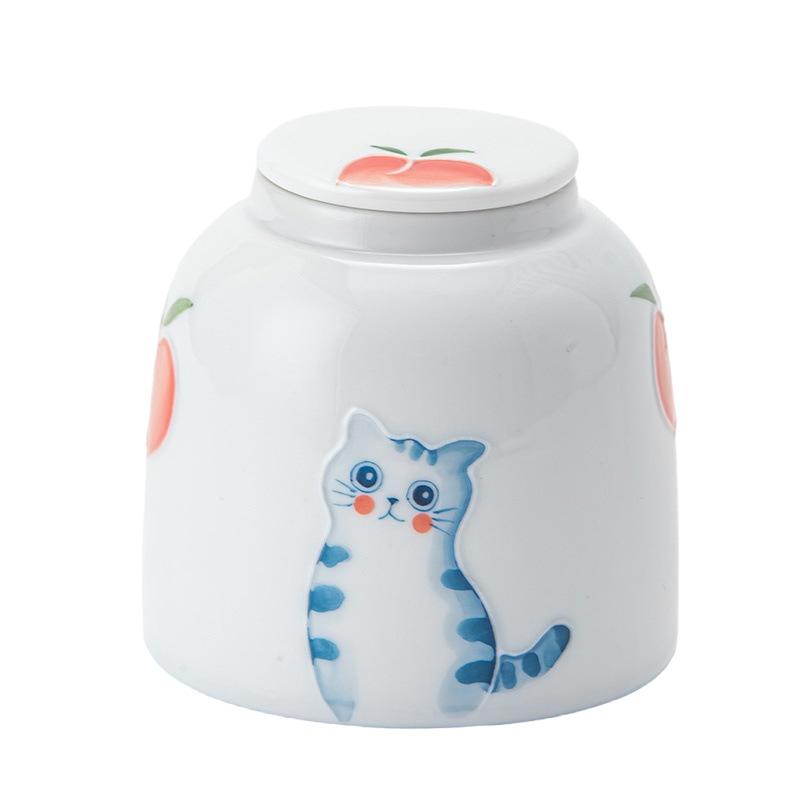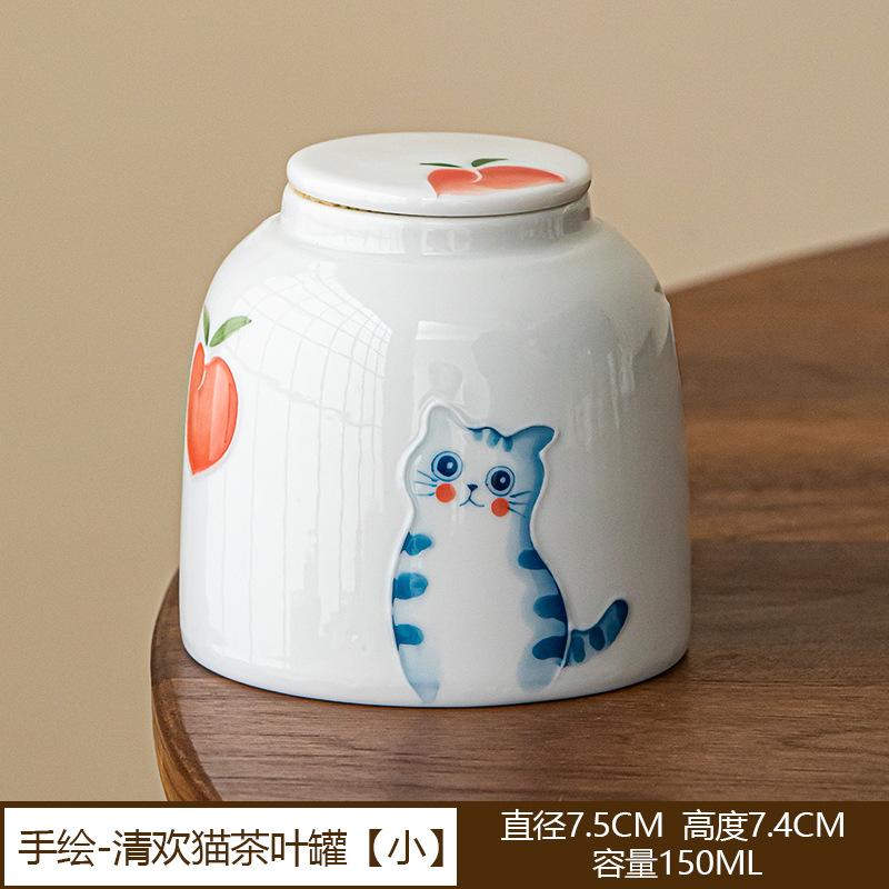 Керамическая жестяная банка для чая с крышкой, расписанная вручную, с изображением кота, керамическая влагостойкая, для хранения чайных принадлежностей, цветочная банка, коробка для хранения