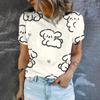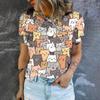 Футболка с круглым вырезом и принтом мультяшного кота, летняя, повседневная, дышащая, свободная, уличная, простая, женская футболка, топ