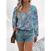 Плюс Размер Женский Новый Осенний Печатный V-образный Вырез Длинные Рукава Топ — купить товар онлайн с бесплатной доставкой по всему миру!