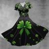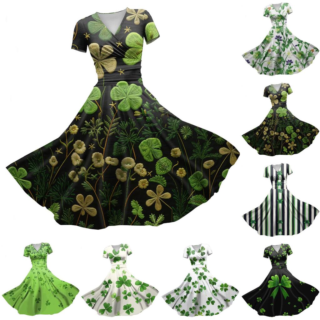 Женское платье принцессы, сексуальное платье с V-образным вырезом, принтом, присборенной талией, плиссировкой и короткими рукавами