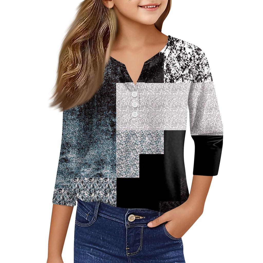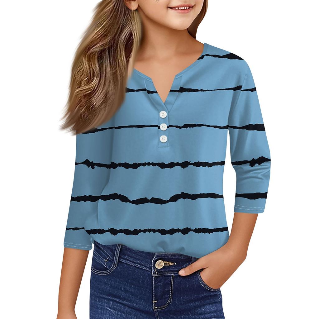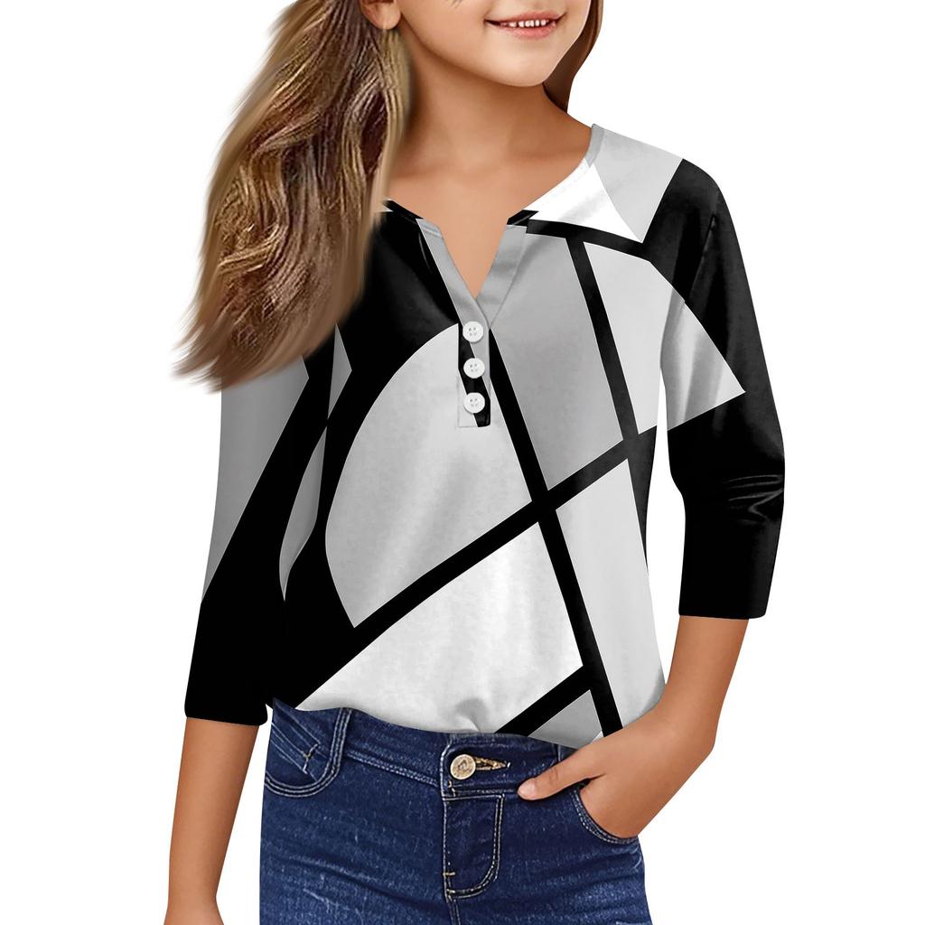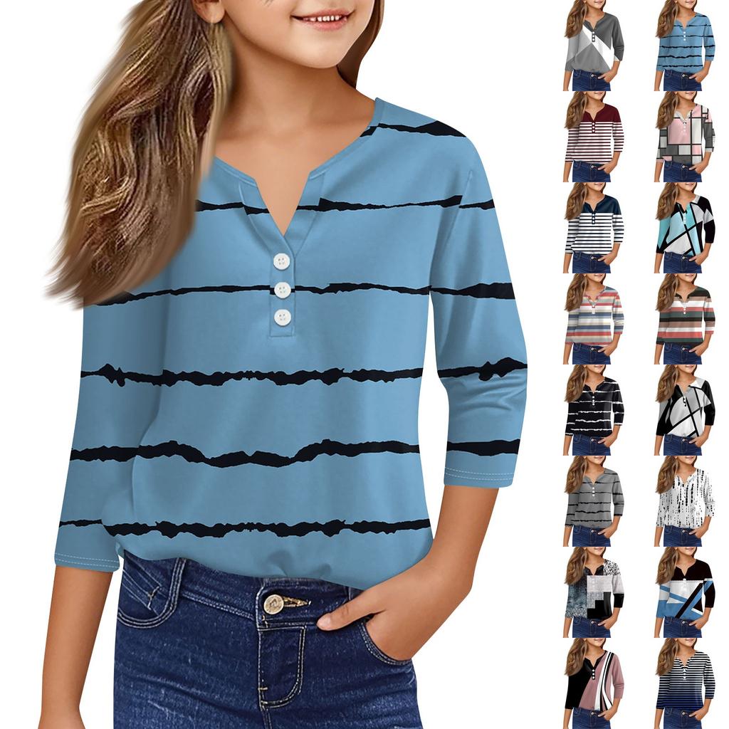 Повседневные модные топы для девочек с принтом, футболка с семью рукавами и пуговицами