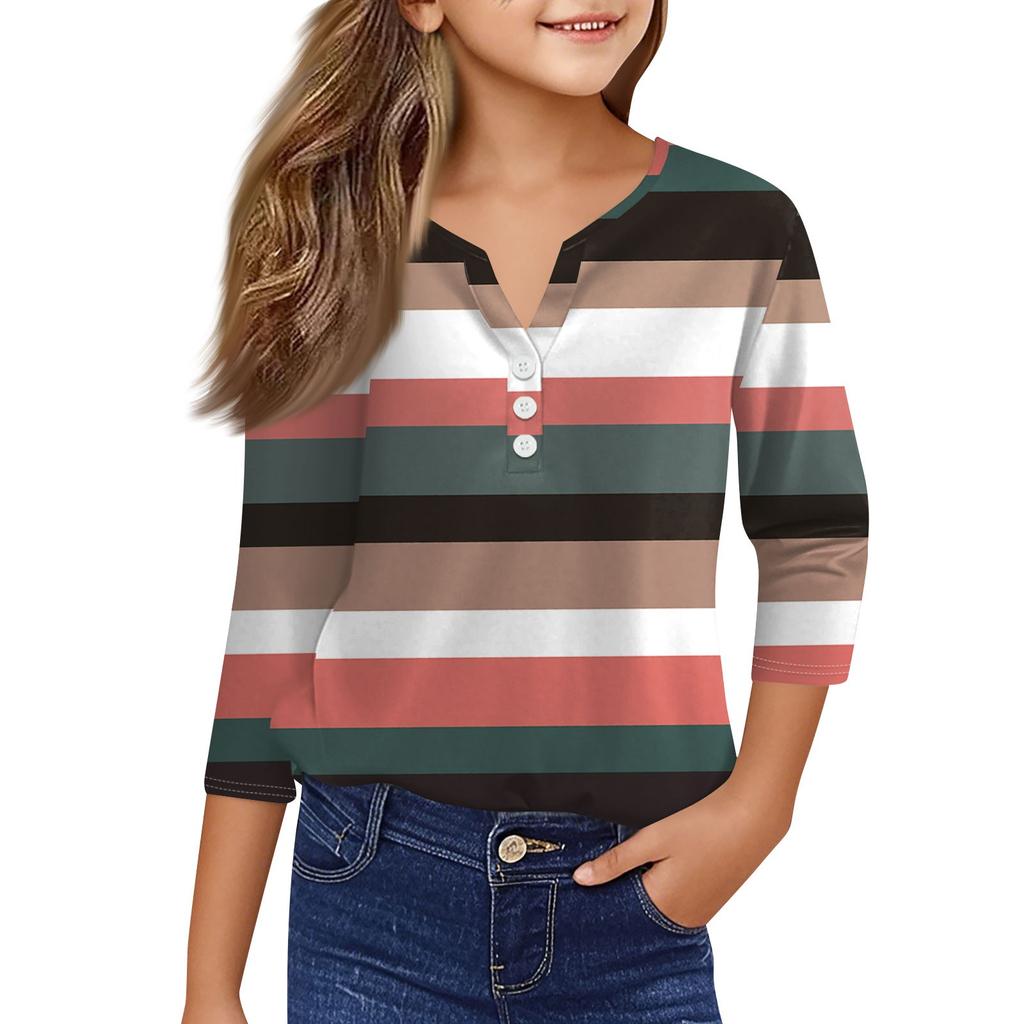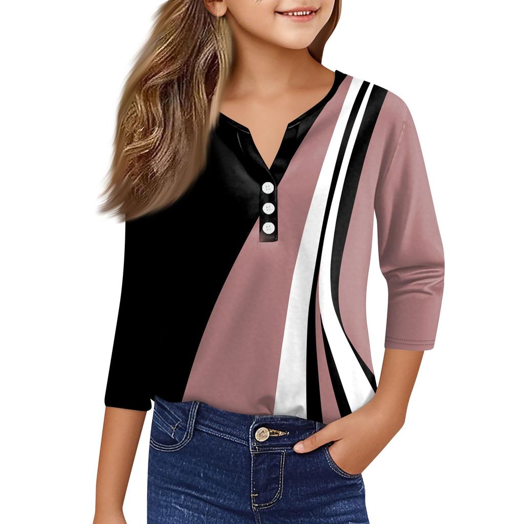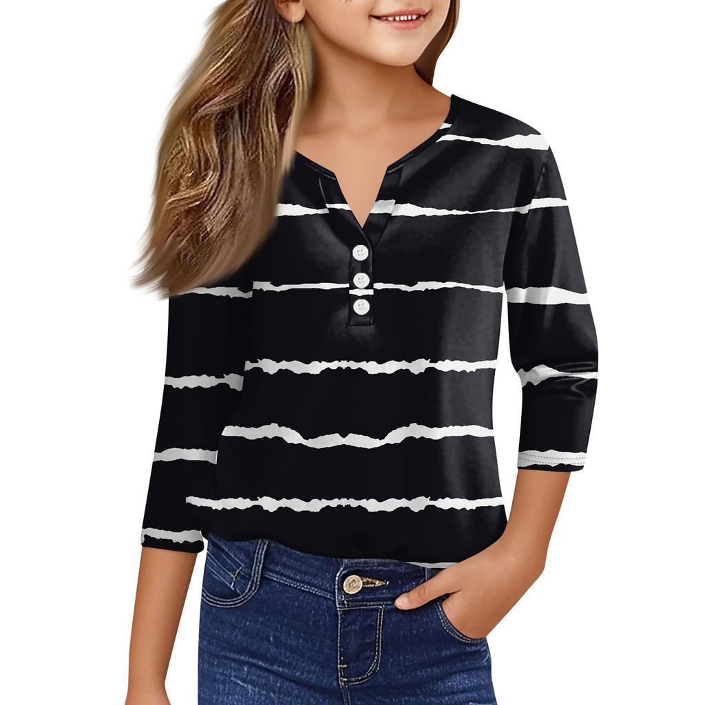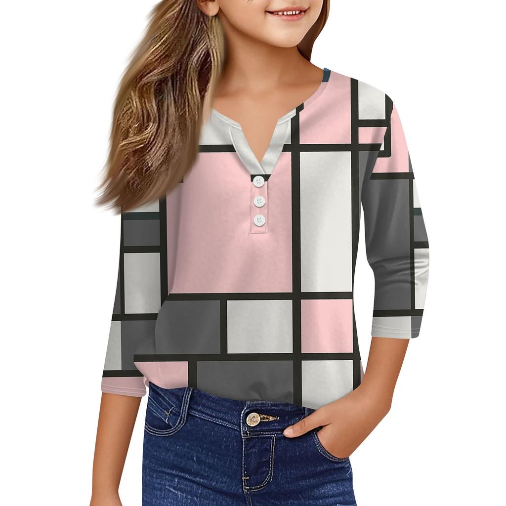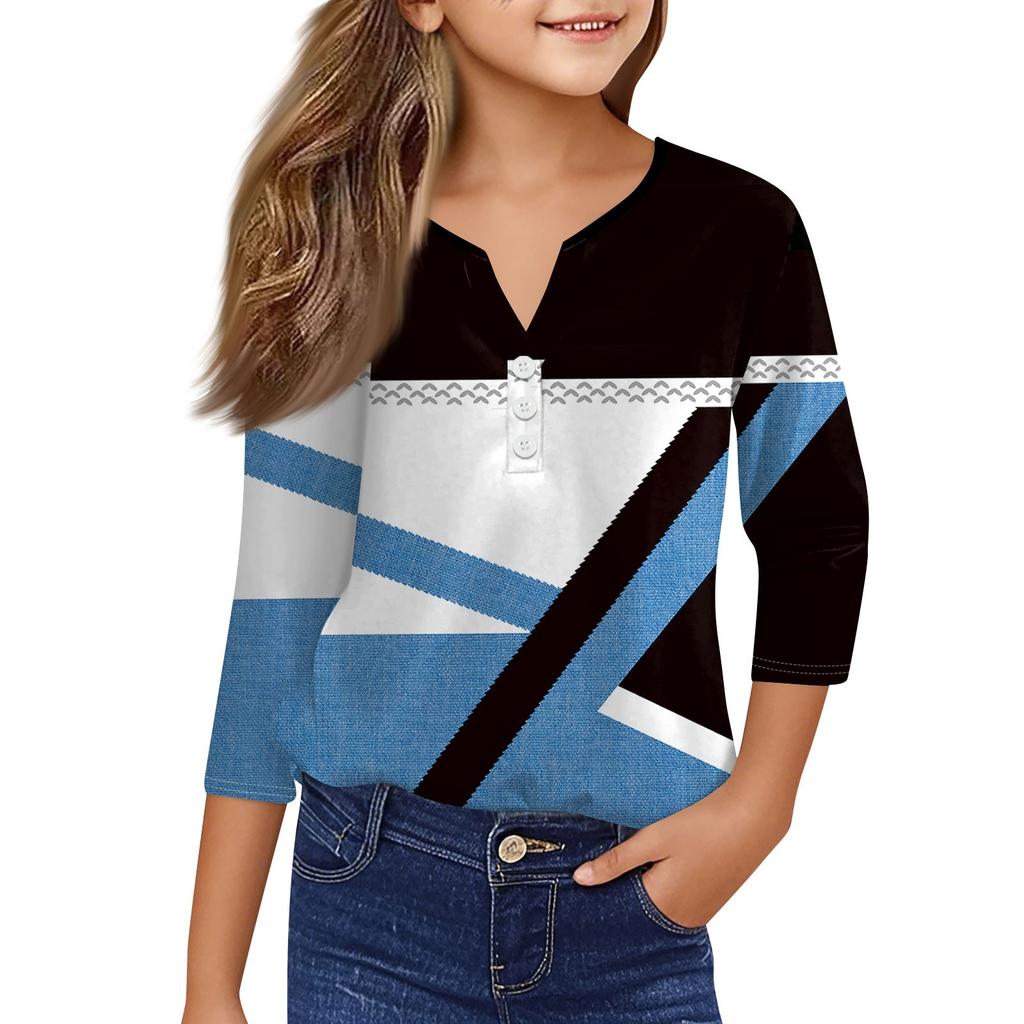 Повседневные модные топы для девочек с принтом, футболка с семью рукавами и пуговицами
