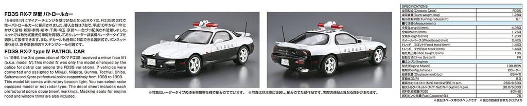 Aoshima Bunka Kyozaisha The Patrol Car Series Mazda FD3S Type IV Patrol Car 1998 Пластиковая модель Литье Цвет 1/24 № 8 RX-7