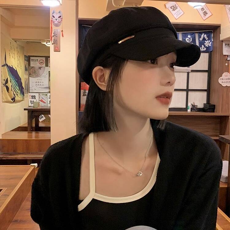 Черный берет, женская сезонная шляпа, японская большая окружность головы, показывающая лицо, маленькая восьмиугольная шляпа художника — купить товар онлайн с бесплатной доставкой по всему миру!