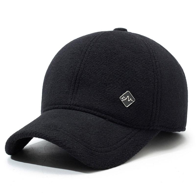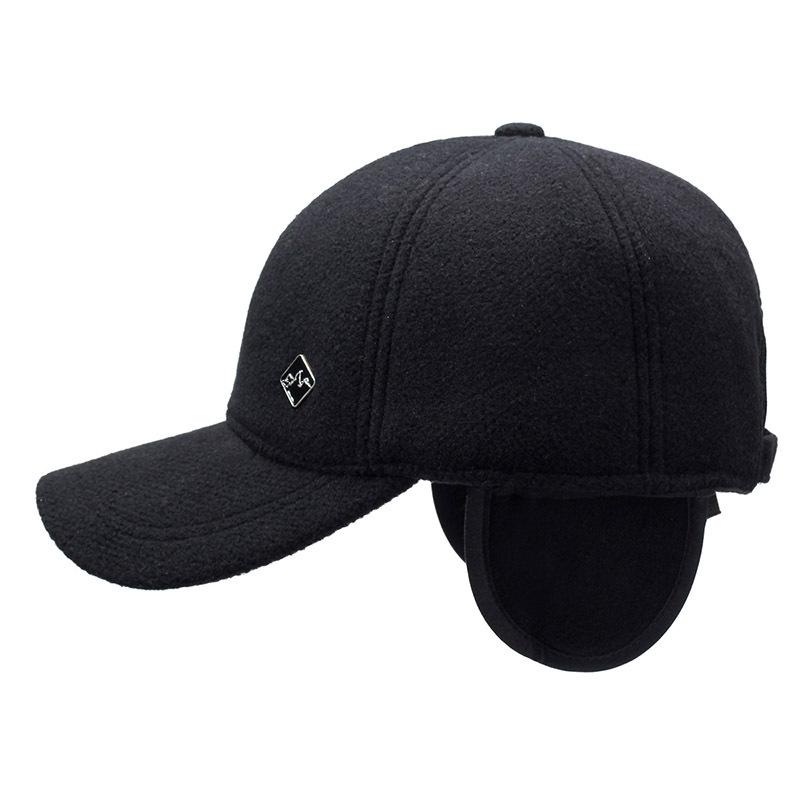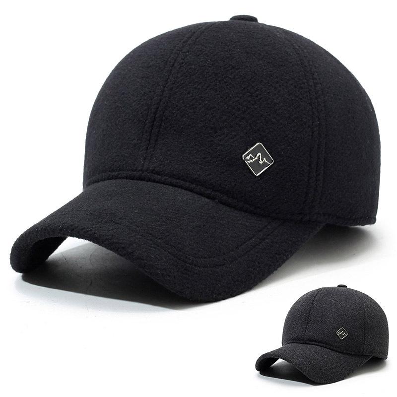 Мужская зимняя шерстяная бейсболка с защитой ушей, однотонная, с короткими полями, флисовая, хлопковая, средняя и старая, ветрозащитная и теплая