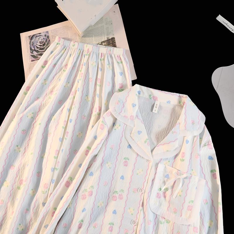 Полосатый цветочный принт женский пижамный комплект с воротником-лацканом осень-зима новая одежда для сна корейская мягкая модная пижама